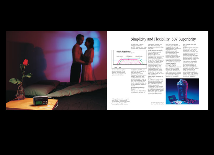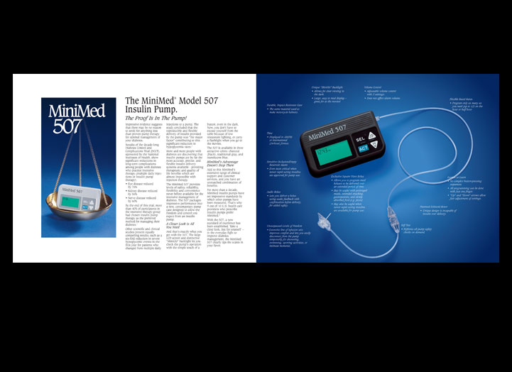 MiniMed was a medical device manufacturer that produced the first insulin pumps for diabetes management. These devices gave patients an alternative to injection therapy by wearing a small pump that provided insulin as needed. The introductory campaign featured the them of tipping the scales in favor of the patient by making diabetes management more efficient and convenient. We created the brochure for the product launch.